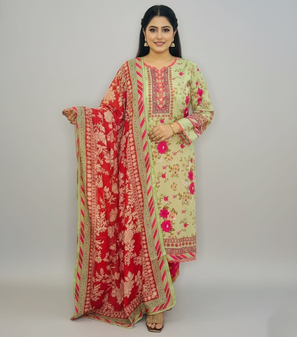As an unstiched 3-piece set, this offering gives you the freedom to tailor it exactly to your preferences. From classic silhouettes to trendy cuts, you can create a look that truly reflects your unique personality. At just 1230 BDT, premium elegance is now within easy reach!