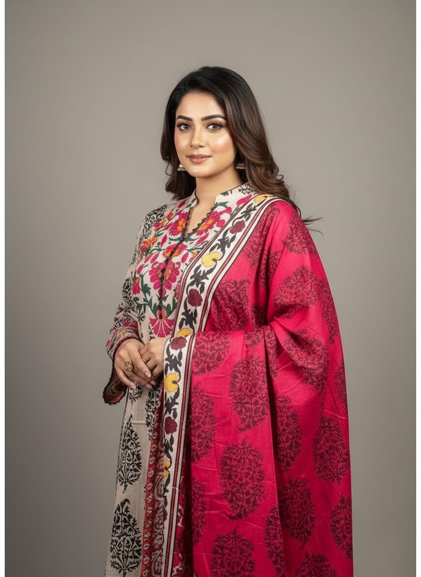 Introducing the Unstitched Lawn Cotton 3-Piece Dress Set, a premium choice for fashion-forward individuals seeking unmatched comfort and style. Crafted from lightweight and breathable lawn cotton, this dress set is perfect for the sweltering summers of Bangladesh, ensuring you stay cool and stylish throughout the day.