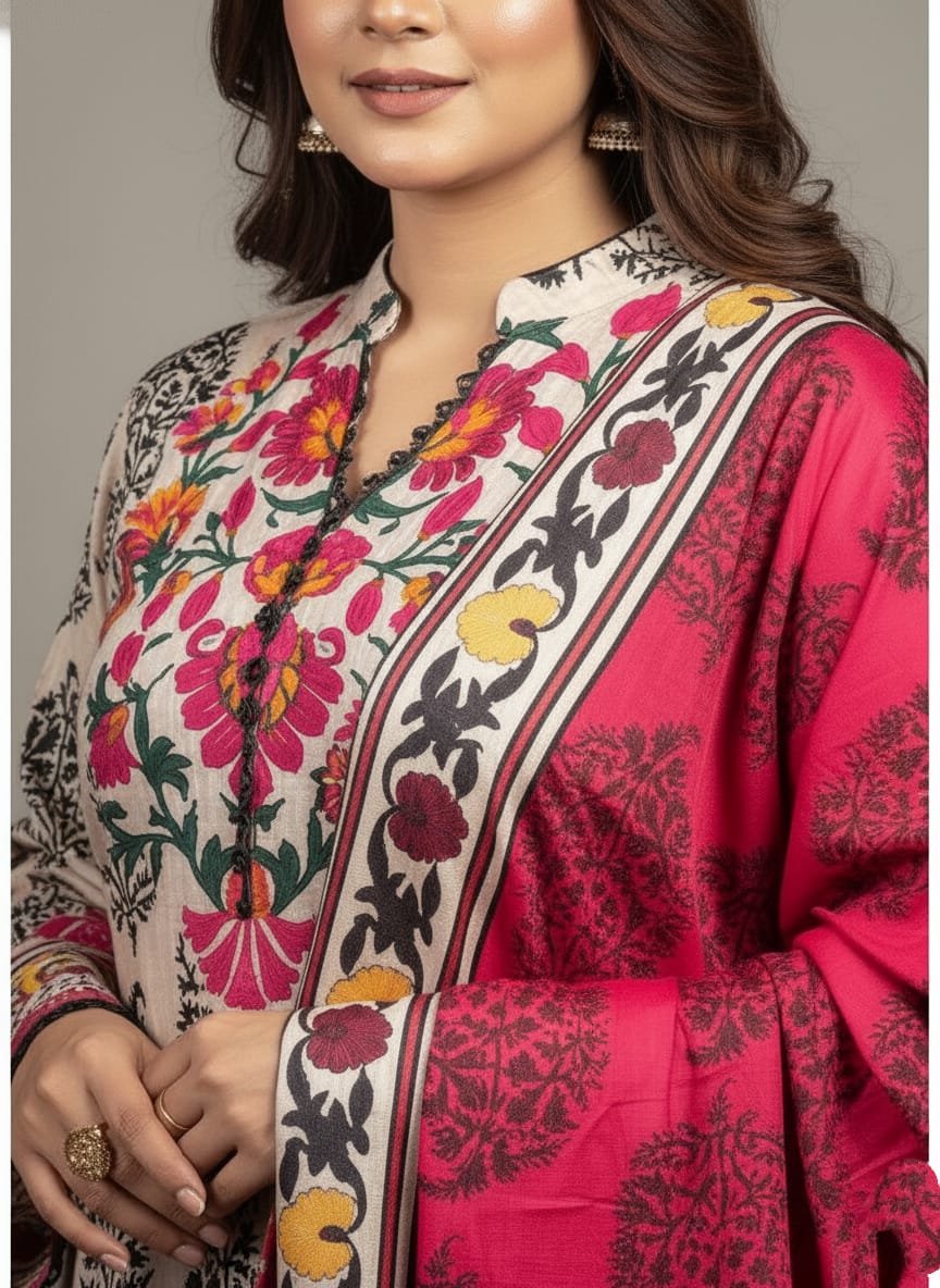 Featuring exquisite digital printing, this unstitched set brings a modern touch to traditional attire. The intricate patterns and vibrant colors are designed to make you stand out in any gathering, seamlessly blending elegance with artistry. Create your unique outfit by tailoring it to your preferences.