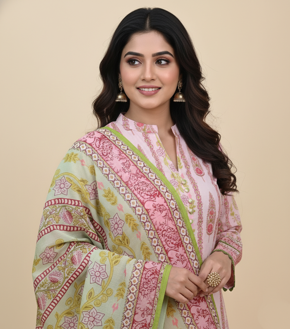 Indulge in the luxury of comfort with our unstitched lawn cotton 3-piece set. Crafted from premium lawn cotton, this fabric is designed to be soft, breathable, and lightweight, ensuring that you stay comfortable all day long.